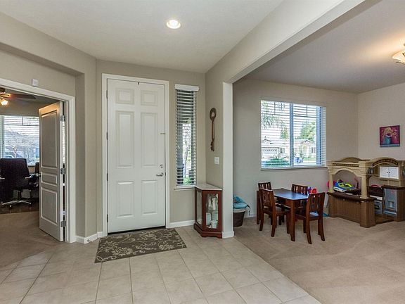 This lovely North West home has a wide open floor plan w/soaring ceilings,walls of windows. Light&bright throughout w/a formal LR or DR. Also downstairs, is an office with an adjoining bath. The spacious FR has a warm fireplace. Granite counters, cherry toned cabinets, stainless steel appliances,a gas range and an inviting breakfast bar highlight the gourmet kitchen. The sunny eating area has custom paint and a beautiful view of the outside fountain. Upstairs you will find 3 spacious bedrooms and a guest bath and a relaxing reading nook. The master suite has a walk in closet, a comfortable master bath, with an oversized shower, a jetted tub,and double vanities. Situated in the Central School District, on a low traffic street, close to shopping , schools,Koligian Park and Riverside Golf Course. The setting is complete with an owned solar system, a covered patio, mature landscaping, a tile roof, a 3 car tandem garage with storage & an outside shed.All this at a price you can afford.