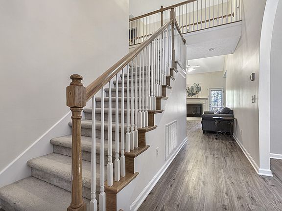 This beautiful home boasts a grand entry foyer and a formal dining room filled with an abundance of natural light. Catwalk overlooking entry foyer and living area! Just Imagine gatherings in the relaxing den with fireplace!!! The attractive front yard landscaping and water fountain create a welcoming ambiance, while the level lot provides ample space for outdoor activities. Unwind on the spacious deck or enjoy the pergola, perfect for warm summer evenings. The huge kitchen features plenty of whitewashed cabinets, offering ample storage and a bright, airy feel. The home boasts 4 bedrooms, along with a bonus room that can be used for a home office, media room, or additional guest space. Master bedroom downstairs!