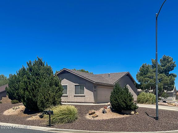 Great Home available in the desirable Viewpoint Neighborhood in Prescott Valley. This home features 1717 Sq Ft with 3 Bedrooms and 2 Baths and a 2 car garage. The entry opens to a vast living room with additional sitting area. Kitchen features tile countertops, Stainless Appliances, Gas Range/Oven, and raised eating/bar top. Split floorplan situates the master bedroom and guest bedrooms on opposite sides of the home. Master bath features a soaking tub, walk-in shower, and private water closet. Access to the backyard from the living room provides a covered patio, and artificial turf area. RV gates allow full access to the yard. Plenty of mature vegetation creates great privacy.