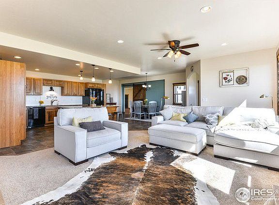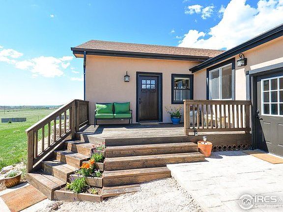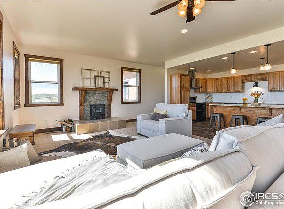 Country living 15 mins to Fort Collins. Beautiful setting on 35.03 acres backs to 160 acres of BLM land. Excellent condition 3bd, 3ba ranch w/ new 40'x56' metal outbuilding w/loafing shed overhang. 2 car detached gar. Fenced pastures. Great room w/wall of windows to let the sunshine in. Gourmet kitchen w/over sized island & all kitchen appl stay. Master bed has lg walk-in closet, 3/4 ba & private deck. Rec room w/wet bar. Family rm/in-law area or in home office w/private bath. Covered patio.
