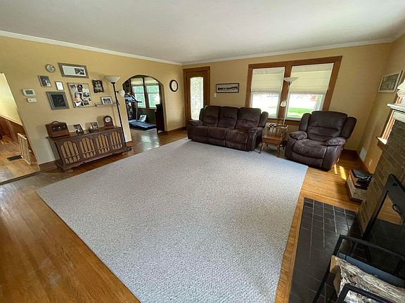 This beautiful farmhouse has been well maintained and cared for. 1 acre lot is fenced in and has a very nice spacious backyard. Amenities include hardwood floors throughout the 3 BR, 1 1/2 BA house, nice fireplace in the large LR and large den with built in bookshelves. The bedrooms upstairs are large and have good closet space. Both bathrooms have been updated. The basement has plenty of storage and includes a laundry area and a workshop room. Vinyl windows have been installed in the house. Appliances stay including the washer & dryer. Also on the property you will find a 20x20 detached garage, a 12x20 shed and a 24x30 garage that has an upper loft for that "man cave" or storage. It also has a gas ceiling heater and is plumbed for a bath.