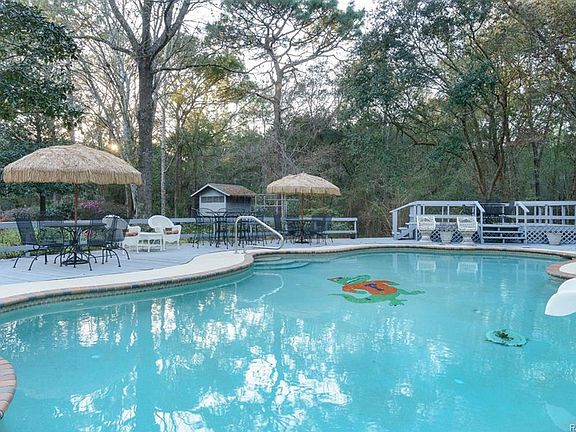 Exquisite Mountain style Log & pool home on 10 AG acres zoned for horses. 2 parcels, 2 wells, gated & tucked away in the woods-with 60 ft wood front & back porches, sports a open modern kitchen w/ granite counters & dining bar, custom wood cabinets, large dining area, great room w/stone fireplace-w/stone chimney. 2 bedrooms & baths down, utility down. Log staircase leads to Master w/ lg closet & jetted tub & sep shower. Library/ofc, converts to bedroom, 2 additional bedrooms & bath 1 with fireplace. 2 AC units. Open pool & BBQ/party deck, Playhouse, 42x20 parking pad/BBall court, 50x40 Metal Shop w/AC'd Office
