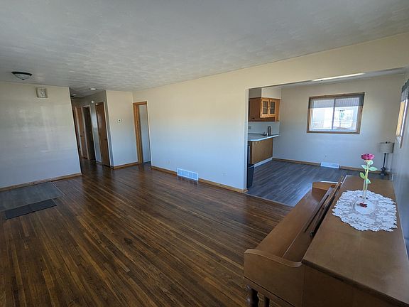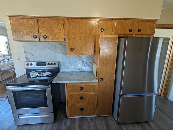 This charming home boasts a newer roof and vinyl replacement windows, ensuring durability and energy efficiency. The main floor features an updated bathroom, complemented by new flooring and appliances in the kitchen. Fresh interior paint and oak hardwood floors add to the appeal. A cedar-lined closet in one of the three bedrooms provides a touch of luxury. Outside, a spacious 7x20 front porch along with a fenced yard offering relaxing spots to unwind. Additional features include central heating and cooling for year-round comfort, along with a 6x12 storage shed for extra storage space. With easy access to HWY 218 and I90, this home offers both convenience and comfort.