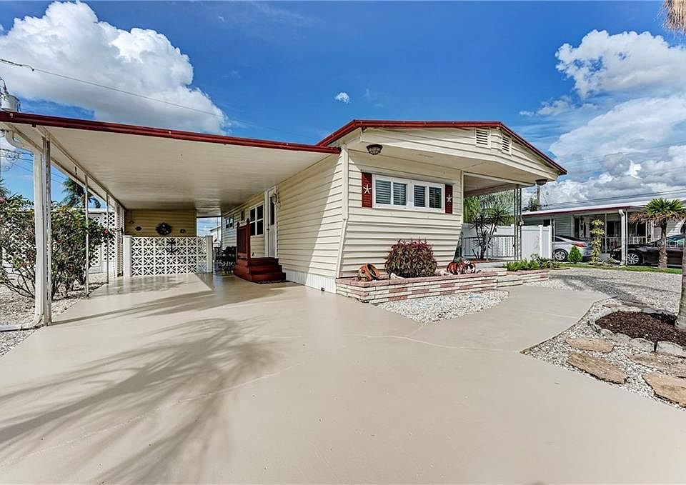 DOUBLE LOT and NO LOT RENT...You Won't Break the Bank with this immaculate manufactured home featuring: An updated Kitchen your family Chef will LOVE, offering Solid Oak raised panel wood cabinets, a pantry, glass back splash and newer appliances...Updated windows ('17) that will help keep energy cost low.....Bath with updated walk in shower ('14) and an ensuite half-bath for the master bedroom..new flooring ('15) is a beautiful Coastal Pine laminate throughout...A/C replaced in 2018, painted and fixtures updated in 2019. And Outside? There is a huge yard with Pergola ('19) for hanging out with friends, in addition to the storage area (that contains washer and dryer) there is an additional screened porch to use as storage or second outdoor living area. Community amenities include a Heated swimming pool, friendly clubhouse where neighbors gather, and shuffle board courts. Over 55 ONLY, Low monthly fees ($122) include water/sewer...Central location means easy access to beaches, dining, shopping...Call TODAY!