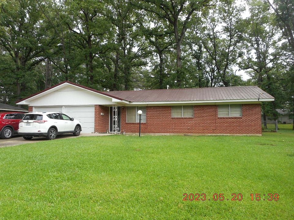 THIS NEW LISTING HAS A LOT TO OFFER! THIS COZY 3 BEDROOM 1.5 BATH BRICK HOME HAS RECENT CENTRAL AIR UNIT, MAINTENANCE FREE EXTERIOR, METAL ROOF, DOUBLE GARAGE, FENCED IN BACK YARD PLUS SEPARATE URTILITY ROOM, STORAGE ROOM AND LARGE KITCHEN. HOME HAS APPROXIMATELY 1,174 SQUARE FEET OF IMPROVED AREA. THIS WOULD MAKE A GREAT STARTER HOME FOR A FAMILY OR A GREAT RETIREMENT HOME.