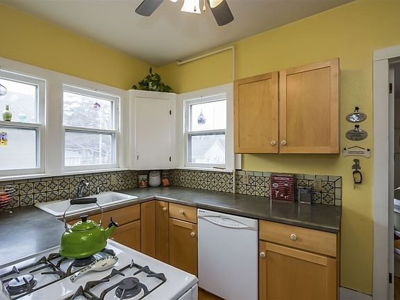 Sweet updated two-story with charm, convenience and a park across the street! All wood floors, lovely woodwork, doors and staircase. Updated galley kitchen with gas range, refrigerator and dishwasher. Decorator tile backsplash,plentiful cabinets and pantry. Main floor bath w/ tile floor and footed tub, 2nd floor bath w/ tile, glass enclosed shower, tile floor and new fixtures. Three bedrooms upstairs with guest bedroom/office on the main floor. 2nd floor laundry room. Close proximity to bus line, town, UI.
