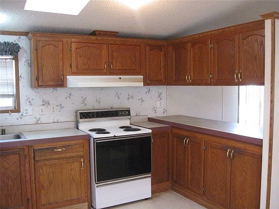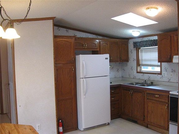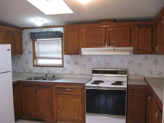 Permanent mobile home is located on a beautiful lot that is on .15 Acreas, but appears much larger. Additional land is owned by City and Railroad. Cement base is 18 X 70 and fastened down. You will enjoy a nice Eat-In kitchen with Oak Cabinets. Two full bathrooms with a large Master Bathroom. Also nice handicapped ramp leading to front entrance. There is a nice size storage shed and room to build a garage. Home is needing some updating but potential to make this a beautiful home! All appliances are included for new buyers! Enjoy your new home with a private lot that has room for your family and guest to play!