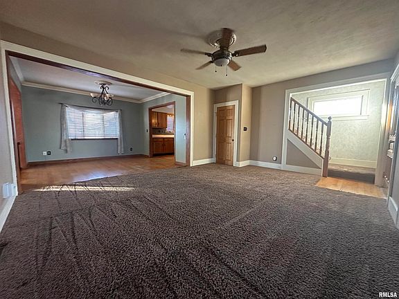 Large 4 BR, 2 bath home with 4 CAR GARAGE, conveniently located close to downtown and close to shopping and dining. This home offers lots of living space inside and out. Large living room with french doors out to the 3 season, enclosed front porch. The family room has gas burning stove and convenient french doors out to the deck for grilling and entertaining. You will also find a large, fenced private back yard. Nice, open kitchen with solid surface counters, slate back splash and wood floors with lots of natural light. Updated main floor with full bath/laundry room with plenty of storage. Don't miss the convenient front garage door, as well as 2 off the alley. Easy to show.
