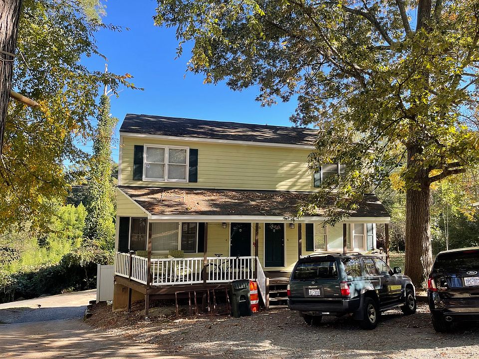 Available mid-June! Renters will love this spacious, updated 4BR duplex with its big front porch, new back deck and rear patio. Plenty of private off-street parking for up to 4 vehicles. Nice floor plan inside with a roomy living area, galley-style kitchen and spacious bedrooms. Kitchen comes equipped with all appliances. Washer & Dryer are included. This house has easy access to UNC Campus via nearby cut-through trail or straight down Cameron Ave. Also centrally located for a quick walk to Franklin St., or even downtown Carrboro if desired. Great location & great rental opportunity for next school year! The interior has 3 levels, the main level consisting of a living room, kitchen, dining area and half-bath. Two bedrooms & baths are located upstairs, and two bedrooms and another bath are located downstairs. Features include hardwood floors, nice window light, updated kitchen and a spacious dining area. A smaller rear deck is located off of the main living room, accessible via slider door entry. Initial lease term runs approx. 12 months, with yearly renewal option thereafter. No Pets & No Smoking in unit. Security Deposit required is equivalent to the monthly rental rate, due prior to lease signing. Tenants pay water, electricity, internet and $10.50 per month required Liability to Landlord Insurance (per household, not each tenant). Yard care is provided. Applications are processed on a first-come, first-serve basis. All members of a group must have applications submitted in order to move forward, up to 4 unrelated persons per town ordinance. Dunlap Lilley Properties, Inc.