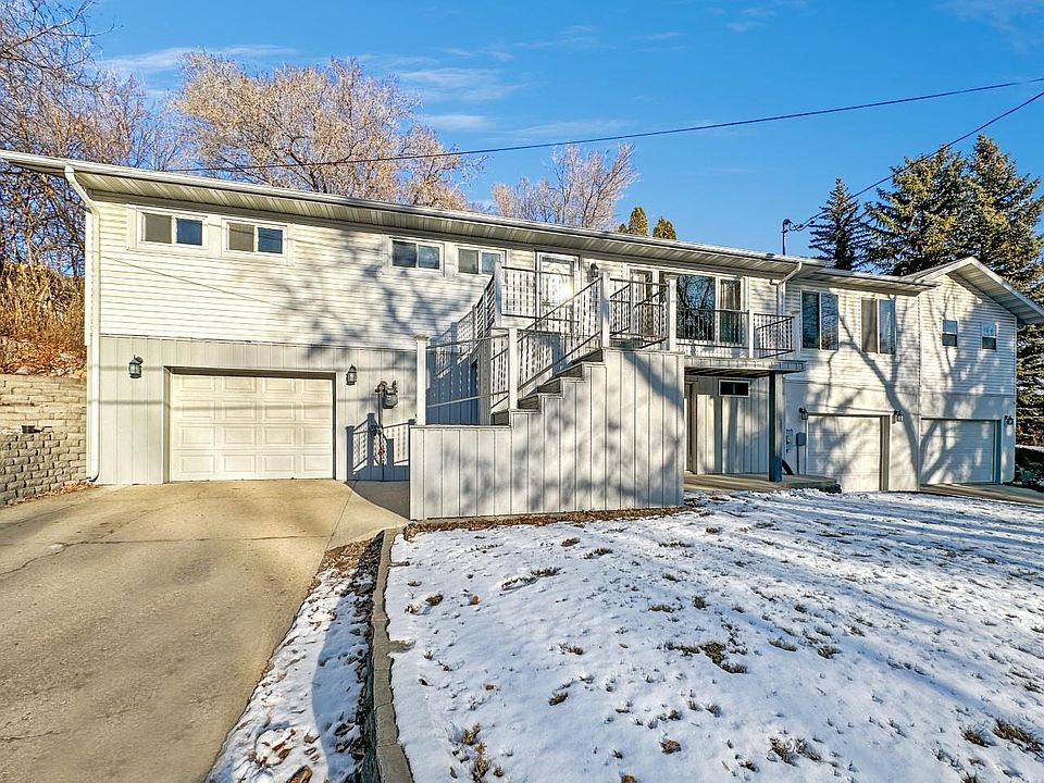 Welcome to 705 Arbor Avenue, a serene location in SE Minot that offers the rare luxury of a backyard oasis, free from neighbors. As you approach, the timeless charm of this residence is evident with its crisp white siding, windows, and an attached FOUR CAR GARAGE, enhancing the classic curb appeal. Step inside to discover more than meets the eye - the upper level boasts over 1800 square feet of living space. The spacious living room is flooded with natural light, complemented by recessed lighting and a thoughtfully designed corner built-in. Journey down the hall to encounter a stylish white galley-style kitchen, complete with an additional bank of cabinetry, a pantry, and discreetly placed stackable washer and dryer for main floor convenience. Beyond, a second living room awaits, featuring a gas fireplace and a wall of windows that opens up to your private backyard patio space. But that's not all - this home generously offers a third living area with backyard access, providing versatile options for your lifestyle. Continuing down the hall, discover an updated main bathroom adorned with cinnamon-stained cabinetry, including double linen cabinets for seamless storage. Bedrooms one, two, and three each feature ceiling fans and neutral finishes. Venture to the walkout basement, where you'll find a fourth family room, an additional bathroom, secondary laundry hookups, and ample storage solutions. Bring your creativity and envision the possibilities!