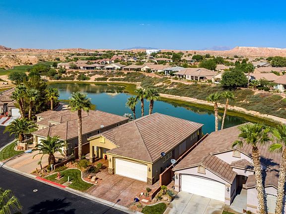 GORGEOUS! This beautiful home is well built and has a great layout! Featuring White Shutters and Contemporary wood accent walls. Two spacious bedrooms and a large Den. Custom Fireplace in Great Room gives a warm and cozy vibe to this quality home. Knotty Alder Cabinetry and Solid Granite in Kitchen. Huge Master Bath and Closet with access directly into the Laundry Room! So convenient! Tile flooring throughout makes cleaning a breeze! Quiet cut-de-sac and front porch for taking in the warmth of the Sun on cool crisp mornings! Best for last! Beautiful pavers line the back patio, layered over the deck. A brand new Pergola has been added giving a wonderful setting to watch our magnificent Sunsets across the pond! In the distance the Canyons Golf Course beckins! Vista Del Lagos at Mesquite Vistas offers our MV Sports Club with a full length swimming pool and hot tub, work out facility, tennis courts, pickle ball and more included in your new home as our favorite amenity. Gated Community.