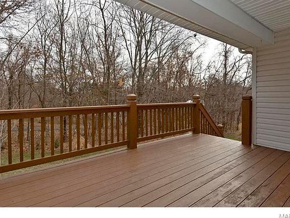 This beautiful sprawling ranch in Lake St. Louis backing to trees has been very meticulously maintained and is move in ready! Step inside to wood flooring, a formal dining room with arched ceilings, a massive vaulted family room with a see-thru wood-burning fireplace w/brick hearth, and tons of windows to allow natural lighting in. The kitchen features a 2 foot bump out, bay window with sliding doors, a fireplace, breakfast bar with overhang, tile backsplash, and wood floors. Enjoy the covered deck overlooking the tree-lined backyard. The master suite features coffered ceilings, a luxurious bath with double bowl adult height vanity, a walk in closet, and a sitting area. This home also features 2 additional bedrooms, second full bath with adult height oversized vanity, a powder room, new roof in 2012, main floor laundry, 3 car garage, lawn irrigation system, wainscoting, and a walkout lower level. Close access to Hwy 364, 40, & 70, close to shopping, dining, and schools.