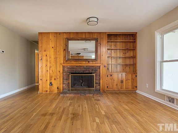 This charming home inside the Beltline offers oak flooring through much of the home, smooth ceilings, and lots of natural light! Large family room has crown molding and several large windows. Gather in the dining room for meals in front of the brick fireplace with built in shelving. Master has his & hers closets, crown molding; Mbath with separate shower & tile flooring. Good-sized secondary beds. Enclosed porch leads to a large deck and yard. Backs up to Raleigh Greenway! HSA Home Warranty included.