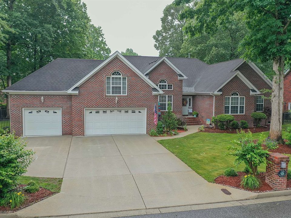 This stunning all brick ranch in coveted Hickory greets you with lush and thoughtful landscaping. Step through the welcoming foyer to find a formal dining room and a large open living room with cathedral ceilings, expansive windows and fireplace. The kitchen includes updated appliances and a butcher block island. Retreat to the huge first floor primary bedroom with gas fireplace, impressive walk-in closet, and vast primary bathroom with tons of vanity space, jetted tub and separate shower. The floor plan provides well-spaced bedrooms and bathrooms. The FROG serves as the fifth bedroom or massive flex space with its own en suite full bathroom. The three-car garage allows plenty of room for vehicles and garage work space. Relax on the screened-in porch, unwind by the built-in firepit, or entertain on the deck. Rest assured knowing the gas furnace and condenser were new in 2020 and provide zoned heating/cooling. Other features include a central home vacuum system and irrigation system.