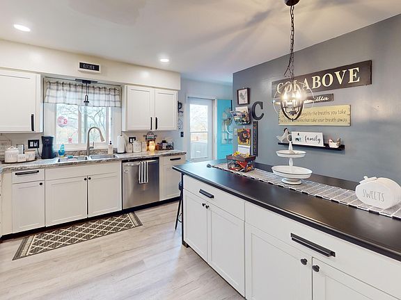 Welcome to this beautifully updated single-level home featuring a partially finished basement. The heart of the home is its modern kitchen, complete with white cabinets, stainless steel appliances, and a spacious island that flows seamlessly into the living room. Abundant natural light and recessed lighting enhance the inviting atmosphere.