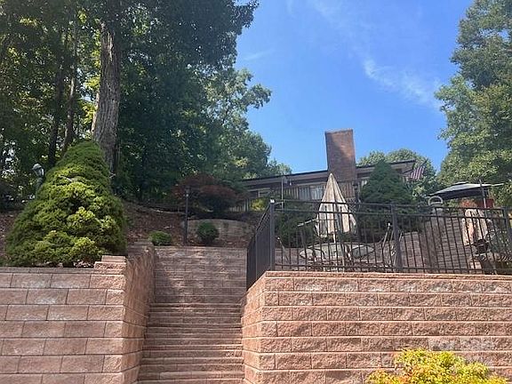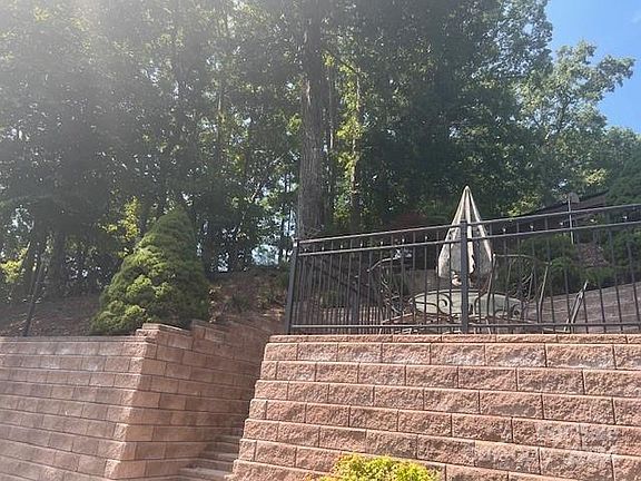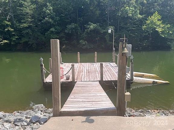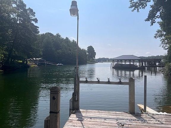 Lakefront home on Lake Hickory NC, nestled in a quiet, deep cove, perfect for relaxation and fishing. 3/4-acre tract with 122 feet of water frontage with floating dock for fishing and boating. 2 BR/2 BA, full walk out basement. Lakeside is beautifully landscaped. Street side has two full size garages for all your toys. Large deck across back and multi-level landscaping that leads to the water's edge for outdoor dining and entertaining. French doors at lake side provide lake views from open kitchen/living area as well as master bath. Paved drive to the lake for launching a boat or other recreational toys. This is the perfect setting for a primary residence on the lake or a vacation home. Home is sold 'as is'. It's on a well and septic. City water hookup is available at the street.