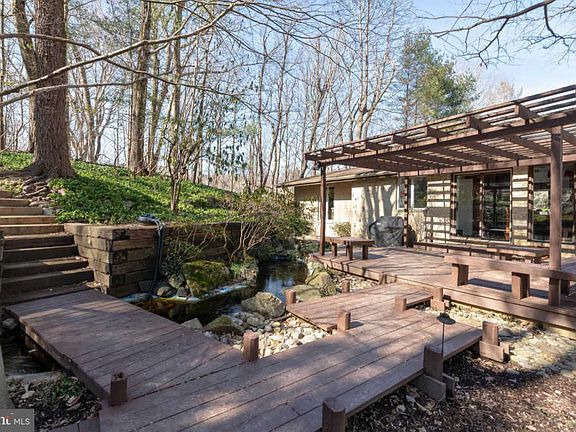 Light-filled 4 Bedroom, 3 Bath contemporary in a beautiful woodland/garden setting. Unique upside down floor plan takes full advantage of the gorgeous grounds complete with trickling stream and bridges. Two large great rooms both with wood burning fireplaces, beautiful gourmet kitchen, lots of storage, decks and detached 2+ car garage complete this one of a kind property.