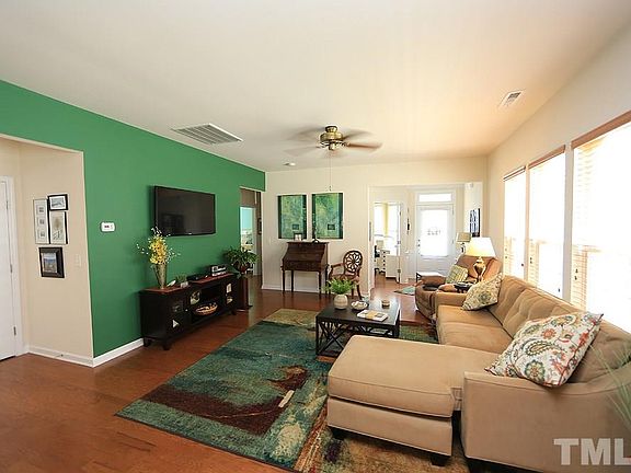 Beautiful Pine Spring model w/3 BRs or 2 BRs + office. Sunroom overlooks private lot w/patio & pergola with built-in seating. Backs to wooded buffer and pocket park. Granite counters in kitchen and bathrooms. Beautiful tiled and hardwood floors, 2 in. blinds plus plantation shutters. Retractable screen door. Fire and C.O. detectors replaced. Combination living/dining room currently used all as living room -- lots of flexibility with this floor plan. Quiet street ends in a cul de sac.