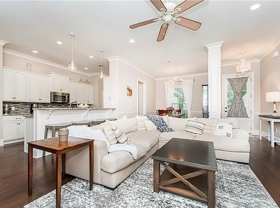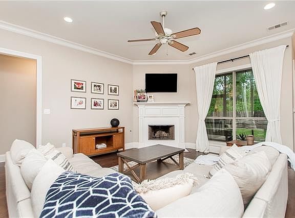 - Ceiling Fan(s), Pantry, Recessed Lighting, Granite Counters, Crown Molding, Tray Ceiling(s), Open Floorplan, Shower, Bathtub, Kitchen Open to Family Room