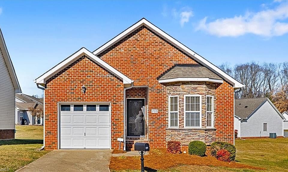 ONE-LEVEL, charming stand alone townhome~ 2BR/2BA with a single car garage and screened in porch! Are you ready for easy living? This home has just the perfect layout! The primary bedroom has transom windows and an arched doorway that leads to additional space that could be a home office or reading nook. The living room and screened in porch both offer ample space to entertain! Don't miss the spacious laundry with utility sink and cabinets! HOA does the yard work! Conveniently located near the heart of Kernersville with close highway access to W-S and GSO! Fridge stays! Make your appointment today, this one won't last!