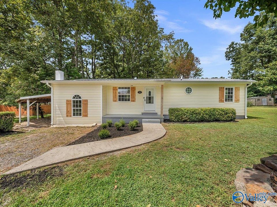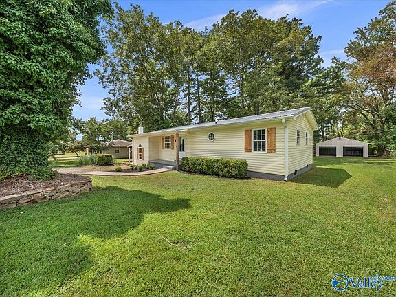Updated 3 bed/2 bath home with large, detached garage in convenient Cullman location. New flooring and paint throughout. Refinished kitchen cabinets with granite and stainless appliances. Primary bedroom suite with private bath and walk-in closet. Nice, covered flagstone patio.