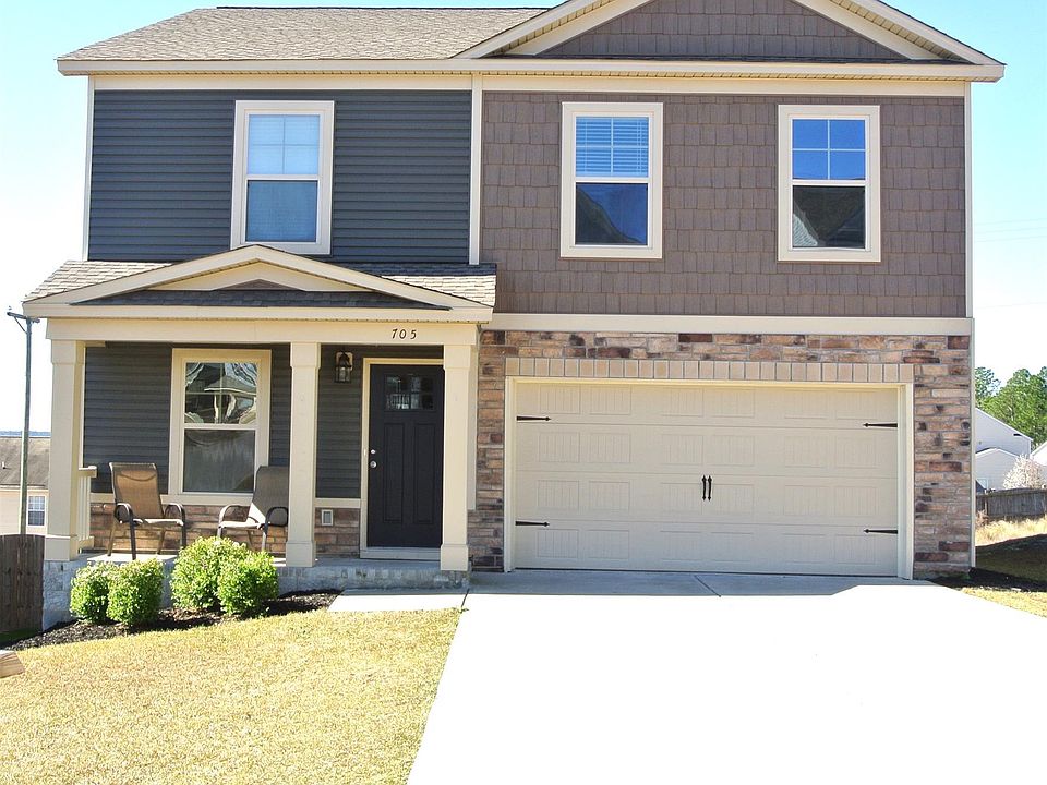 Showstopper!! Immaculate and well taken care of! 5 BR, 3 Full Baths. Gourmet Kitchen with granite, island, walk in pantry, gas hookup in kitchen for stove, energy star appliances. Guest BR downstairs. Spacious Great Room! Master BR with trey/2 walk- in closets! Granite in Baths! FLEX Room or 2nd LR upstairs/office. Tankless hot water heater, Radiant Sheathing in Attic, Full Sprinkler, R50 insulation, Fenced in backyard! Community Pool & Playground! 100% USDA Financing.