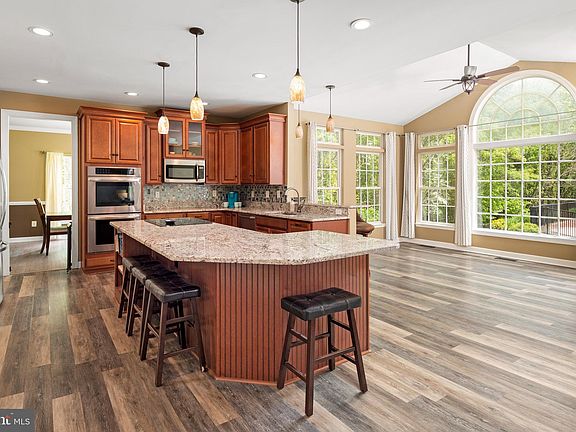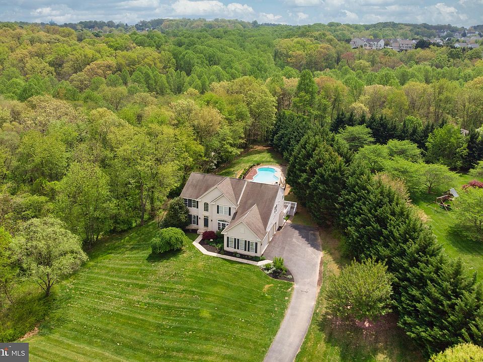 Outstanding single family home located on two private acres with public water, public sewer, natural gas utilities, a three car garage and a heated saltwater pool! This home is filled with all the right upgrades including 9' ceilings on the main level; gourmet kitchen with maple cabinets, granite countertops, upgraded appliances and a custom backsplash; large family room off the kitchen featuring upgraded luxury vinyl plank flooring and a cozy gas fireplace; bright sunroom with great views of the pool and private back yard; on-trend hardwood floors in the two-story foyer, main level office, formal living room and formal dining room; Four bedrooms on the upper level, all with rich, engineered wood floors, including a primary bedroom suite with a versatile sitting area, two walk-in closets and an upgraded luxury bath. The finished, walk-out lower level offers a true 5th bedroom, full bath, home gym and plenty of casual living space and storage. Relax at your private oasis including an in-groud pool and a private deck all overlooking woods with access to a trail to the creek. Recent mechanical updates include a new water heater in 2022, kitchen appliances and washer & dryer in 2016, HVAC in 2014.