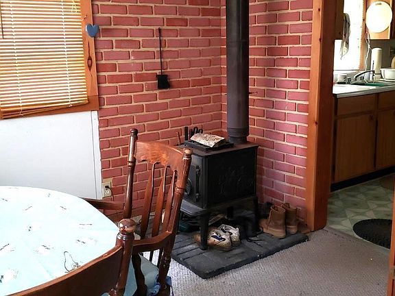 Cozy 670 sqft cabin with Kitchen, Living Room, Dining Room, Enclosed Porch, and deck. This property is located walking distance from State Land. Great vacation property! Has neighboring pond views.