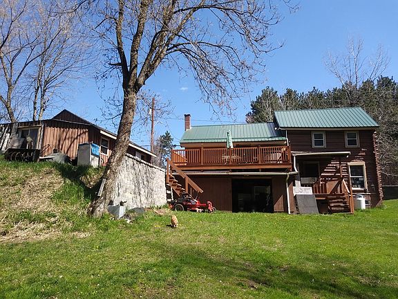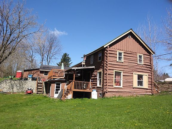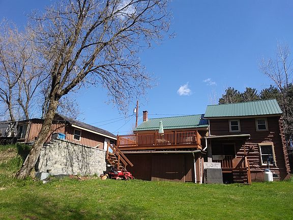 This home is located just outside the Hamlet of Dickenson. It has a nice backyard which is partly wooded. A small stream runs across the property. Original house is a cottage with a log addition added. Metal roof is about 3 years old. New laminate floors throughout. New water heater (1 year). Detached garage with electric garage door opener. It has a large back deck overlooking the backyard which is great for relaxing or entertaining. Walk out basement has lots of storage space.
