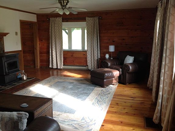 This is a rare find: charming log home on Cumberland Head nestled on one acre with partial lake views from the bedroom and the backyard! Drive to work everyday along Lake Champlain, one of the most scenic roads in NY! Corn fields right behind the property, quiet road, country living only 5 minutes from the city, it's a jewel! The pellet stove in the living room is 2 years old (could be converted back to a woodstove), the front porch is such a great peaceful place to spend hot summer evenings. You will very much enjoy the warmth the natural wood logs bring to the interior of the home; the living room (23 x 16 ft) has windows on 3 sides of the room. Dining room and kitchen are open concept.