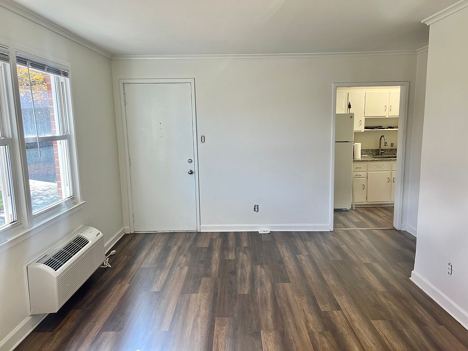Immaculate first floor one bedroom light filled condo. LVP flooring thruout. Kitchen with granite. Freshly painted interior. Bedroom has a generous double closet. Set back from the street this condo is a very short walk to the Village District and all that the Village offers. Water included. Dogs accepted per owner's approval. Off street front and rear parking included.