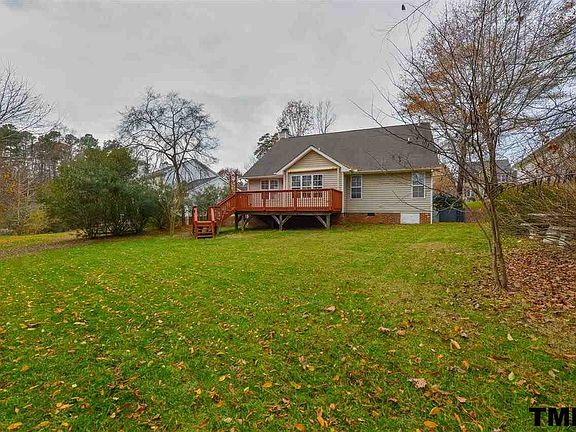 Wake Forest living! Charming ranch home on cul-de-sac lot! Deck overlooks large backyard. Cozy family room with fireplace. Kitchen features lots of cabinet space and breakfast area. Dining area off family room. Double car garage! Master bath includes custom tile work, dual vanity, garden tub and separate shower. Wonderful open floor plan! 2 year old furnace! Low maintenance vinyl siding! 2nd bath with custom tile! Upgraded lighting package! This very well maintained home is awaiting its new owner!