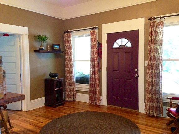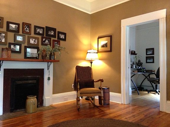 Our house is a bungalow, built in 1910 and renovated in 2005, and located in the heart of the NoDa neighborhood. It has original and reclaimed hardwoods throughout, with the exception of tile in the bathrooms. At the front of the house is a small sitting/living room. On either side of this room are guest bedrooms, which could double as offices. At the back of the house is a dining room that everyone who's lived there, including myself, has turned into a cozy den. The main bath is straight back, and includes the home's restored original sink and a walk-in tiled shower. The sizable master bedroom (which includes a small walk-in closet plus the original closet) and master bath (including laundry) are also at the back of the house. Along the other side of the house is a long kitchen, with a gas stove and a breakfast nook beside the backdoor and tiny porch. The backyard is big and fenced in, with a small storage building. The front porch is wide and sunny and perfect for people watching, esp. since the house is located just 2 blocks from Cabo and Smelly Cat... it's one of my favorite things about the house!