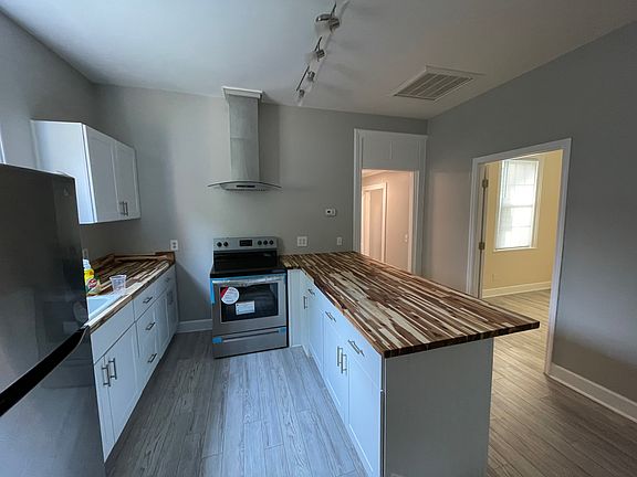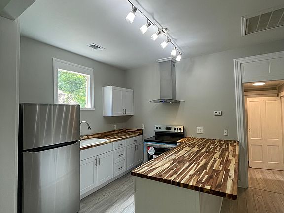 Available immediately: Half mile from Garvin Hall (SCAD), Single family home, 2BR 1 BA, newly renovated interior, new flooring, new stainless appliances, butcher block countertops, tons of natural light, in-unit laundry, real tile shower, new quiet ceiling fans, central heat and air conditioning, new privacy fence on double lot for on or off-street parking. Attic storage not included in square footage. Two Tides brewery/restaurant going in 2 blocks down in 2024. Local, responsive property owner. Please contact me by phone to view. Thanks, Amy Electricity (~150 monthly) and city utilities (trash, water, sewer, every other month bill ~120). 1 year lease.