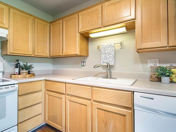Great condition, wonderful location! Scotch Pines condo with laminate floors throughout and rare open layout between kitchen and dining area. Upgraded cabinets and lighting and all appliances included. Ground level unit has assigned parking right in front of it, and patio door opens to lovely green belt. Perfect for first home or investment - was rented last two years for $1300/month. Seller will be doing 1031 exchange. Immaculate and easy to show.