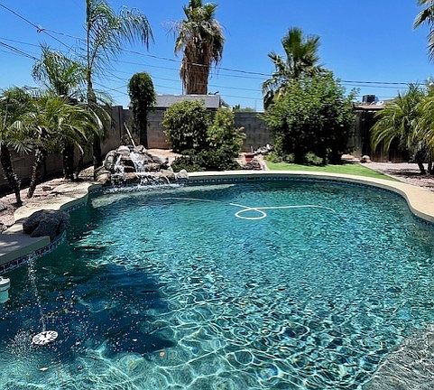 Discover this stunning 3-bedroom, 2-bathroom home in Apache Junction! Featuring a remodeled kitchen with stainless steel appliances, quartz countertops, and elegant white cabinets, this home is a true gem. The open-concept living room, kitchen, and dining area boast brand-new tile flooring, creating a modern and inviting space. Step outside to beautifully landscaped front and back yards, complete with an inviting pool and a fantastic patio area perfect for entertaining or relaxing. Located minutes from Downtown Apache Junction, you'll enjoy easy access to restaurants, shopping, hiking trails, lakes, and major freeways. This home offers the perfect blend of comfort, convenience, and outdoor adventure. Landscape service and full pool maintenance services included in the rent payment. Buyer agent compensation available. 12 month or longer lease term. Property is professionally managed. No HOA