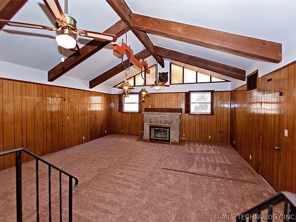 Walking distance downtown Jenks One owner home well maintained. with many amenities new paint carpet Kitchen has custom wood cabinets dishwater and garbage disposal, heat/air about 3 years old Roof 6years and new outside electrical box glass shower doors Full attic Very large patio yard Sprinkler well water Great room is 22'x21' with massive hand cut granite fire place doors to patio. garage and side vaulted ceilings with custom lighting double fans Inside basement total5 ceiling fans. gas lights