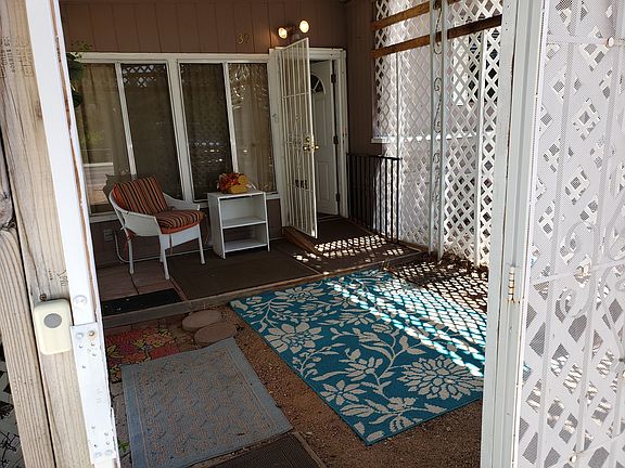Very clean 2 bedroom 2 bath. Arizona room and enclosed patio area. One bath has tub and shower combination, the other walk in shower. Nice office area. Fenced yard with artificial turf, great for a small dog. Comes with refrigerator and front load LG washer and dryer. Outside storage shed. Fresh paint and move in ready. Located in adult only park. Cash only