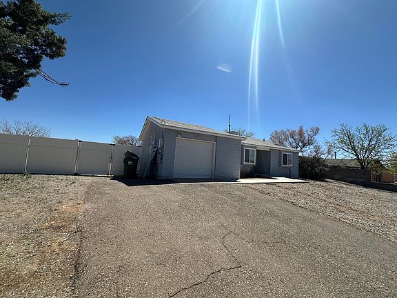 Welcome to this charming well kept home on a huge nearly a third of an acre lot! Open floorplan with vaulted ceilings and wood burning fireplace. No poly pipes, replaced 2022. Vinyl wood look flooring, Newer vinyl fence/gate with backyard access room to store camper/RV, trailer etc. No HOA! Possibilities are endless! This is a great home with Sandia Mountain views from the backyard, will not last!Seller will be paying off the solar at closing for the buyer!