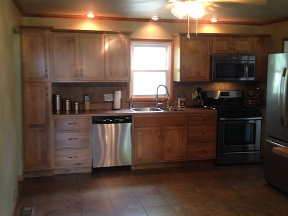 Home was remodeled in 2010/11. Comes with whirlpool stainless appliances and whirlpool washer and dryer. Floorings- dining and kitchen slate porcelain tile, living room oak 3/4" t&g hardwood, bathroom granite tile, bedroom 3/4" t&g oak hardwood. Custom maple cabinets and snack bar in kitchen/dining room. New high efficient heating and AC along with duct work in summer of 2010. Have over 100k in this house, my loss is your gain.
