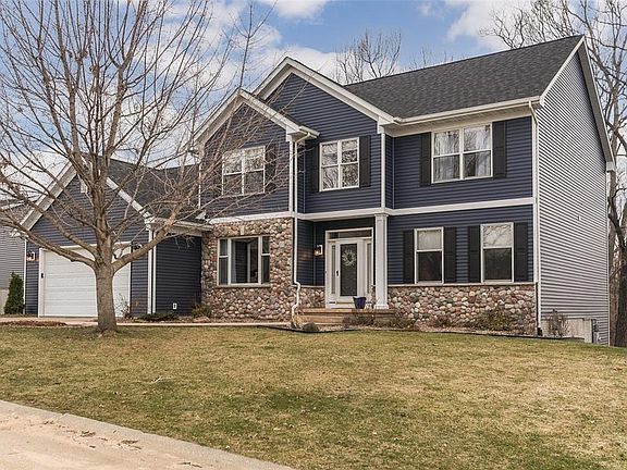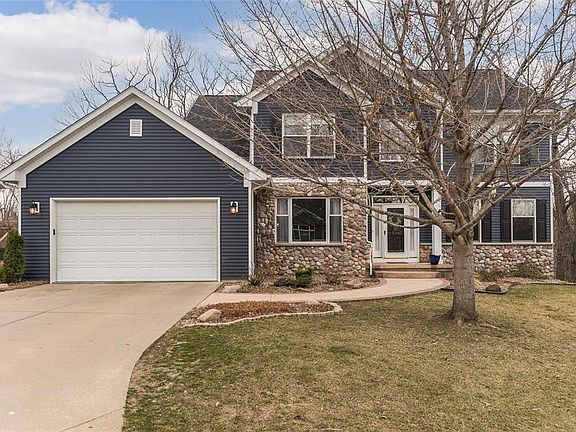 Stunning two story situated on a quiet cul-de-sac with no neighbors behind! This home offers tremendous curb appeal with brand new siding, roof & shutters. The floor plan is the perfect blend of open space and individual rooms including a den/study, formal living and dining rooms and a great room open to the kitchen and informal dining area. The chef's kitchen includes an inviting cook top area with granite counters, tile backsplash and large center island. Other noteworthy features include a 3 seasons room, walk-out basement with rec room including a bar area, sauna and back yard with a paver patio that would be the perfect space for a fire pit. You will also appreciate the updated furnace and air and extra deep tandem garage. Excellent location on the edge of town yet minutes from Hy-Vee, downtown and Hwy 100, truly a hidden gem.