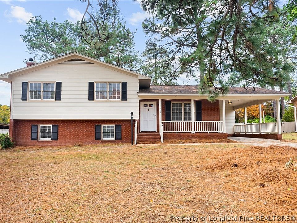 Cute tri level style home freshly painted with new cabinets and granite counter tops. New appliances in the kitchen. New carpet and vinyl plank flooring. Move in ready. Great Starter home. Short commute to Ft Bragg and shopping.