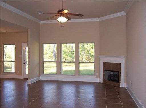 Spacious new home in popular Autumn Creek. Low-maint brick, stucco & vinyl exterior. 18" cer tile in liv, din, kit & baths. Carpet in bdrms. Open kitchen with bkfst bar, stainless steel appliances, tile countertops & espresso cabinets. Huge pantry with wood shelves. Large laundry room. Corner frplc in liv rm. Walk-in closets with wood shelves in all bdrms. Large covered back porch. Fully sodded & landscaped yard. Walk to n'hood pool.