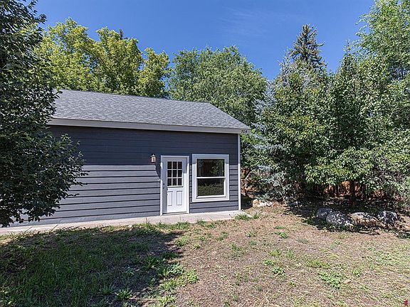 Location Location Location! In town Bayfield, this unique home features a large .24 acre lot with large trees, 3 bedrooms, 2 full baths and a huge garage/shop and NO COVENANTS. With 11' ceilings throughout, this 1,280sf home lives large. New appliances, new ceiling fans, new flooring in 2 bedrooms and a new front door. There is a primary suite with a large closet and a full bathroom attached. The other two bedrooms are across the hall and have access to a full bathroom as well. The kitchen has new stainless steel appliances and the living room is light and bright with lots of windows, tall ceilings and a gas line installed for a gas fireplace, if so desired. This property features a huge 682sf metal shop/garage for car storage, or for use as a shop - it's big enough to fit an RV, boat or any other toys/tools/things you want. The property has a tall fence for privacy, large trees, a beautiful pond feature, a chicken coop and an outdoor sauna! The home has a walking path from the backyard directly to Mill Street for enjoyment of all amenities that Bayfield has to offer, truly a must see. There is also water available through the Pine River Ditch company at the curb (see docs and buyer to verify water availability to their satisfaction). Fox Farm Village has this irrigation and, while this property (along with a few others) succeeded from the HOA, the irrigation is still allowed to be used, per the seller. The turn on valve is at the curb. Buyer to verify water availability to their satisfaction.