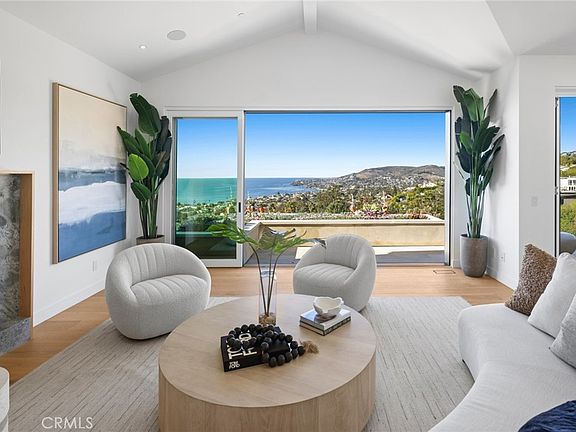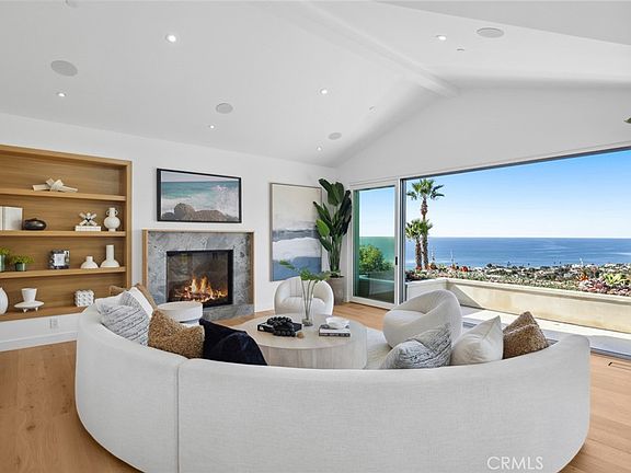 Just completed with a virtually endless list of today’s most desirable appointments, this brand-new custom home in Laguna Beach offers stunning ocean views from every room. Its elevated setting at the end of a cul-de-sac next to the Orange County coastline welcomes panoramic views that reach as far as Long Beach and Catalina and San Clemente islands and span the village of Laguna Beach, enchanting sunsets and thousands of sparkling lights. Massive windows and large sets of glass accordion doors allow for sublime indoor/outdoor living at the home, which presents four bedrooms and four baths in a generous floorplan measuring approximately 3,392 square feet. A private courtyard entry with a soothing fountain and an original art glass sculpture by Marcus Thesing provides a tranquil introduction to the contemporary residence. Enjoy a main level with priceless ocean views, walls of disappearing glass, a fireplace-warmed living room with built-ins and a vaulted ceiling, and a kitchen that opens to a covered loggia with fireplace that extends living space. Anchored by a large waterfall island, the bespoke kitchen complements mealtime preparation with top-tier Thermador appliances including two dishwashers, custom wood cabinetry, two farmhouse sinks and quartzite countertops are true pieces of art. This entire living, dining and kitchen space, complete with an abundance of natural light and the scenic Pacific Ocean as a backdrop, is ideal for sharing special occasions with those you hold dearest in your heart. Refinements are led by an elevator, skylight, three fireplaces, an enclosed wine room, white rift-oak wide-plank flooring, modern lighting fixtures, solar power, and an EV charger in the garage. Select secondary bedrooms open to a balcony, and the primary suite is framed by numerous windows with ocean views. Enjoy an enormous walk-in closet with custom built-ins, separate vanities, a freestanding tub and a large steam shower. A street-to-street lot features additional spaces for outdoor living. Village shops, galleries, beaches, restaurants and cafés are moments from this extraordinary new custom residence. Whether your primary or second home, it offers the ultimate coastal lifestyle in Laguna Beach.