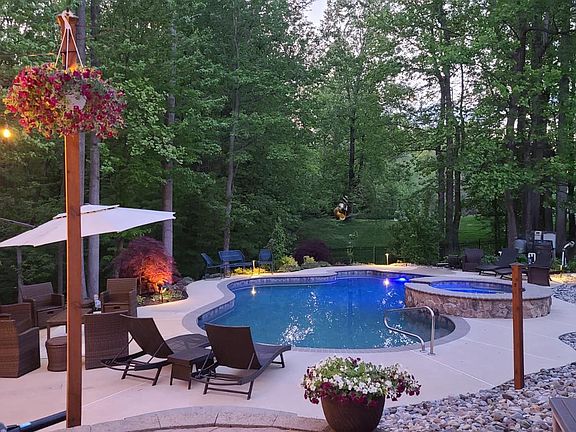 Offering over 5,600 square feet, this magnificent residence allows for both elaborate entertaining and comfortable living. Sited on a one acre, beautifully landscaped lot in the sought after neighborhood of Covenant Creek. Elegant and inviting details include a soaring, two story foyer, an impressive gourmet kitchen with stainless steel appliances and a spacious island, dual pantries, a butler's bar and ceramic tile floor. The kitchen opens to a sunroom and a two story family room providing an abundance of nature sunlight. The main level is complete with a professional office, formal dining room and a living room. Upstairs you will find large secondary bedrooms, a luxurious owner's suite with a sitting room and cathedral ceilings and a new custom master bath offering a relaxing soaking tub and separate walk-in shower. Entertain in the fully, finished lower level bound to be the envy of every guest! This area features a custom bar with a refrigerator, copper farm sink, stand alone icemaker, dishwasher, microwave and a built-in tap system. The changing room and full bath are separated by a barn door and provides an additional washer and dryer. Do not miss the rustic brick flooring, the additional den/game room and the 5th bedroom for visiting friends and/or family. Multiple outdoor living spaces include an expansive, composite deck overlooking the private, rear yard with extensive hardscaping and a heated, in-ground pool with hot tub. Other highlights include a three car garage, plantation shutters, hardwood flooring, a pellet stove, a security system with 7 cameras, exterior sprinkler system and so much more. Welcome Home!