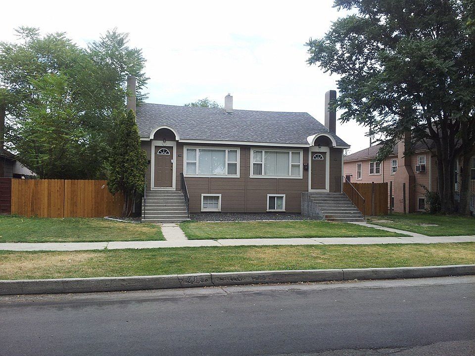 This duplex unit has a lot of space! New windows, siding & roof. Newer interior paint throughout. One bedroom on main level and two downstairs. Beautiful hardwood floors on main level with wood fireplace in living room and large windows for natural lighting. Open kitchen with beautiful countertops. Large laundry area downstairs. Unit is fully fenced & pet friendly. View of park! Parking off-street through alley. Must see!