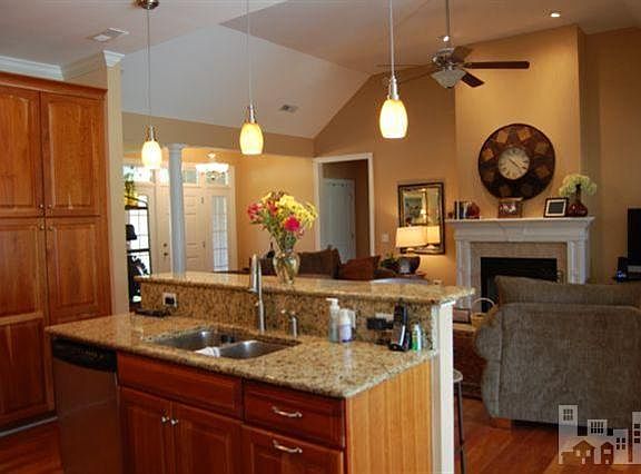 Step into this majestic home, and you are greeted by Brazilian cherry floors, vaulted ceiling and open space perfect for entertaining. Walk into the kitchen to find 42'' cherry cabinets with pull out drawers, venetian gold granite with rounded edge, stainless sink, and elevated bar. This beautiful home has a formal dining room with built up chair railing, plus spacious breakfast nook. The 1st floor master bedroom features a vaulted ceiling, great wall space for furniture and walkout to the huge screened porch. Into the master bath, you have jetted garden tub, plus oversized tile shower with built in seat, dual vanities set into elevated venetian gold granite counters. The other 2 bedrooms, split for privacy, have their own bath with dual vanities also featuring granite counters. Up