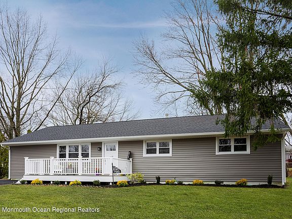 Completely renovated ranch new kitchen, new bath, new roof, new windows, new siding. Harwood floors throughout, quartz counter tops stainless steel appliances. garage was converted to 4th bedroom, can be used as den office or additional bedroom. Open floorplan is filled with lots of light. New kitchen has center island and mudroom off kitchen with back door that opens to deck and large private yard.
