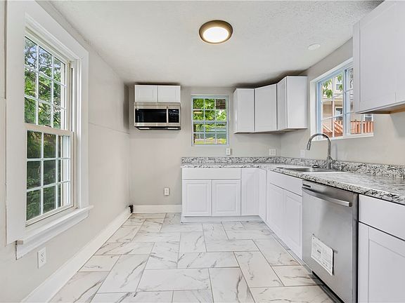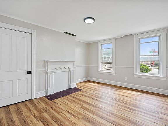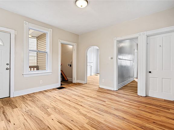 This freshly done remodel is a must-see! Updates include: new plumbing, new electrical, new windows on first floor, new flooring throughout house, new hot water tank, updated bathroom and kitchen, new dishwasher, new light fixtures, and new bedroom doors as well as new exterior doors. The interior has also been freshly painted and set up for first floor laundry hookups. There's also off-street parking in the back of the house. Park in the back and carry your groceries directly to the kitchen through the side entrance.